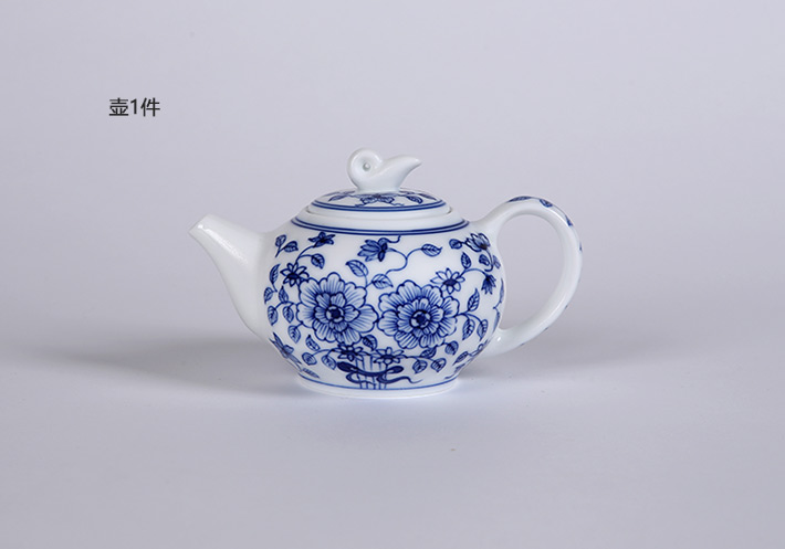 8頭手繪青花工夫茶具國色天香