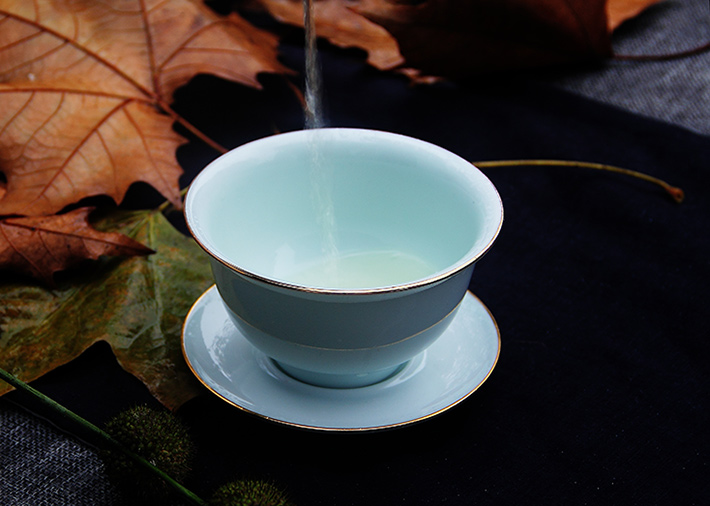 9頭全手工青釉茶具金鑲玉