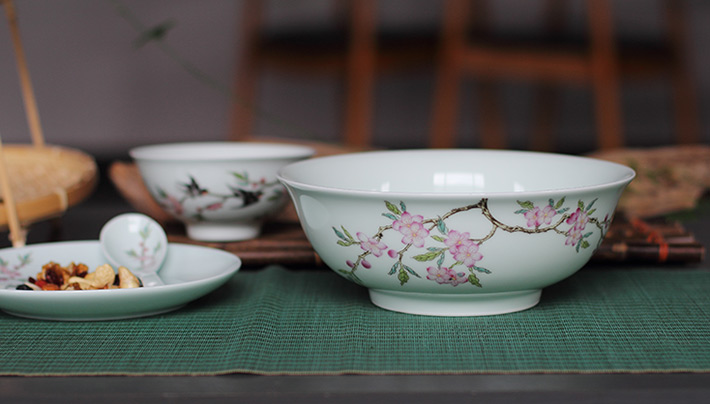 22頭青釉中餐具--燕子桃花