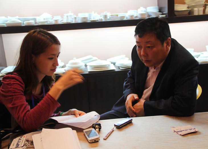 中國日?qǐng)?bào)社記者在采訪公司董事長王耀先生