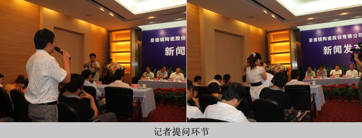 新聞發(fā)布會上,市人大副主任、市委秘書長余振泰,市政府副秘書長、市國資委黨委主任劉朝陽,市旅游局局長饒寧生,陶瓷股份公司黨委書記、董事長王耀、黨委副書記、總經(jīng)理夏躍中等相關(guān)人員就陶瓷股份公司近年來的發(fā)展、公司工業(yè)旅游發(fā)展、實施品牌戰(zhàn)略等方面回答了與會新聞媒體記者的提問。