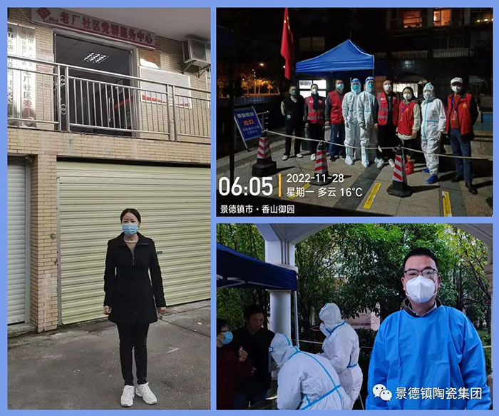 班子成員靠前指揮、科學(xué)調(diào)度、干在一線。景陶集團(tuán)黨委書記、董事長(zhǎng)周敏建既是集團(tuán)公司疫情防控工作總指揮,又是所在社區(qū)居住樓樓長(zhǎng),同時(shí),還以黨員志愿者身份,每天堅(jiān)守在防疫一線。