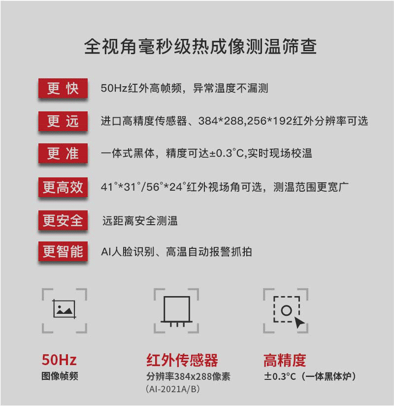 注意事項(xiàng) 紅外熱像告警系統(tǒng)應(yīng)正確安裝,可自動(dòng)跟蹤人體額頭區(qū)域并顯示體溫,操作人員應(yīng)經(jīng)生產(chǎn)廠家專業(yè)培訓(xùn),并嚴(yán)格按說(shuō)明書(shū)使用。 ·應(yīng)嚴(yán)格按照中國(guó)國(guó)標(biāo)(GB_T19146-2010)和各地市場(chǎng)監(jiān)管局的要求創(chuàng)造使用條件;﹒嚴(yán)格按照規(guī)范要求,安裝在室內(nèi)無(wú)風(fēng)或者微風(fēng)的固定位置使用,室溫環(huán)境在16°℃~32℃,避免陽(yáng)光、風(fēng)和其他熱源干擾(環(huán)境溫度超出16°℃~32°℃,需要安裝空調(diào),并在產(chǎn)品3m內(nèi)無(wú)風(fēng)或者微風(fēng)); ·若安裝在室外,必須搭建棚子或者板房來(lái)保證環(huán)境穩(wěn)定; ·戶外陽(yáng)光照射后、劇烈運(yùn)動(dòng)后或從溫差較大的戶外場(chǎng)景進(jìn)入室內(nèi),需在室內(nèi)環(huán)境平靜靜置5分鐘后進(jìn)行測(cè)試。