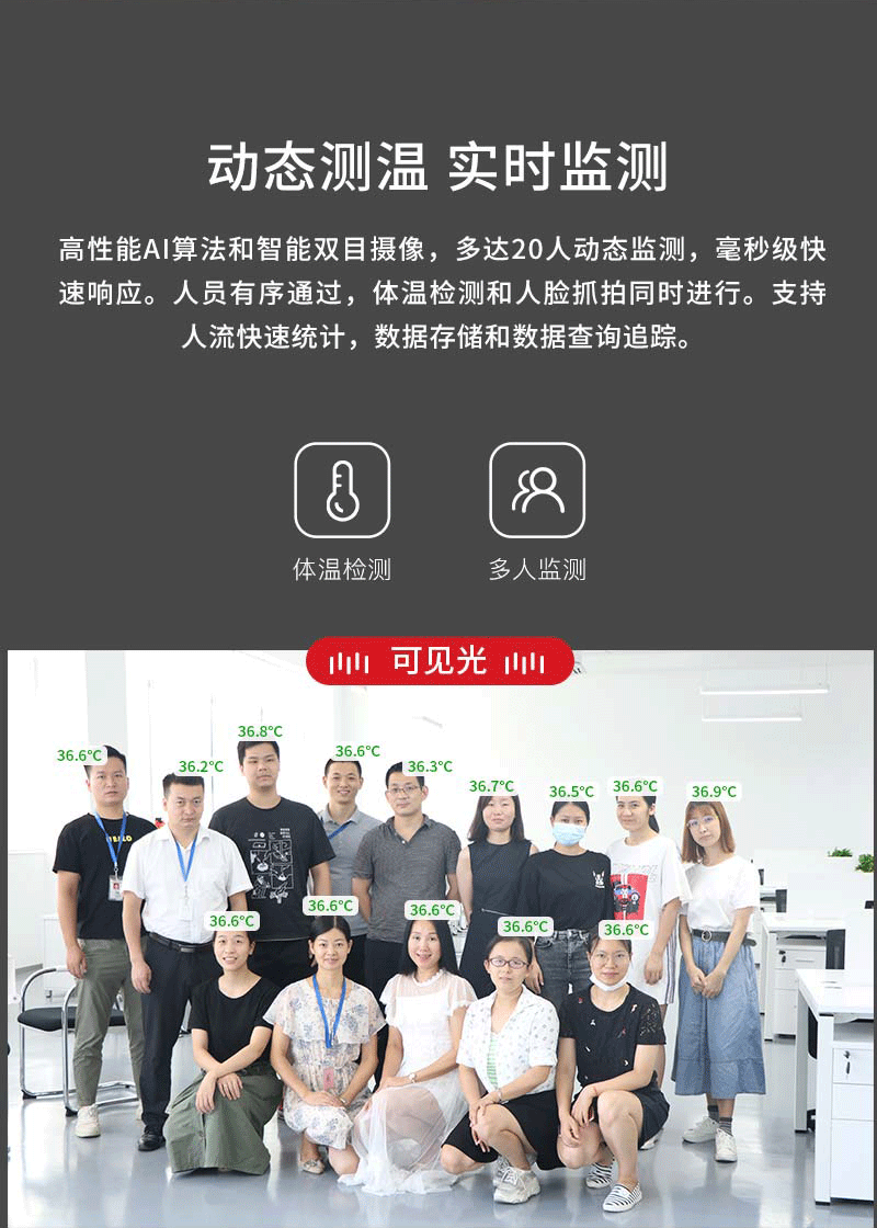 ·被測(cè)人員要求:戶外陽(yáng)光照射后,或者劇烈運(yùn)動(dòng)后,需在室內(nèi)環(huán)境平靜適應(yīng)5分鐘后進(jìn)行測(cè)試;人員從戶外場(chǎng)景進(jìn)入室內(nèi),建議經(jīng)過(guò)回廊緩沖至少10秒鐘后,再步入檢測(cè)位置,如果室內(nèi)外溫差較大時(shí),建議在室內(nèi)停留2~3min再行檢測(cè);確保待測(cè)人員整個(gè)面部處于設(shè)備攝像視野內(nèi),同時(shí)面部及額頭不能被遮擋(帽子、圍巾、墨鏡、面具、退燒貼等可能遮擋面部的物件,建議先提前摘下,適應(yīng)0.5-1分鐘后再進(jìn)行測(cè)試。)
